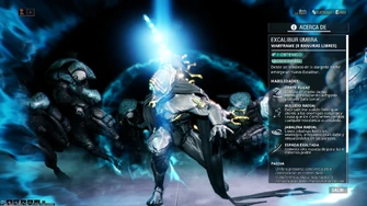- A diferencia de otros warframe, Excalibur Umbra permanece activo después de usar la transferencia, apoyando al Operador con sus habilidades y armas, exceptuando la espada exaltada umbra.